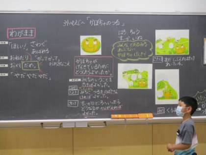 1年生の5時間目は道徳の授業でした。この授業では、教科書の「かぼちゃのつる」という話を取り上げ、「わががま」について考えてみました。教室でも、担任の先生や友達に注意されても聞こうとしない様子はよく見かけます。今日の学習を通し、これまでの自分を振り返り、これからの自分をよい方向へ変化させていってほしいと思います。