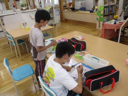 写真上 : 本の表紙を絵に描き取っていました。