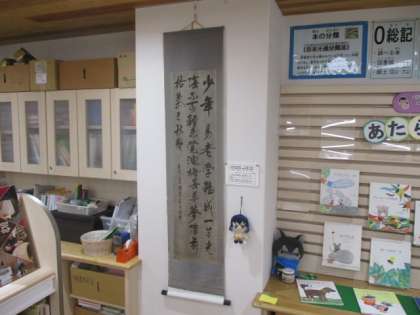 写真中下 : 掛け軸を描いていました。