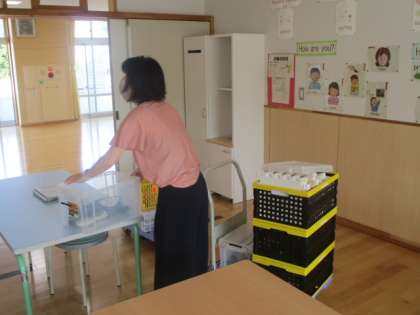 先週に続き、本日も5・6年生がプログラミング学習をうけます。講師の先生も朝早く来ていただいています。さっそく会場では準備を始めました。学習の様子は後程お伝えします。
