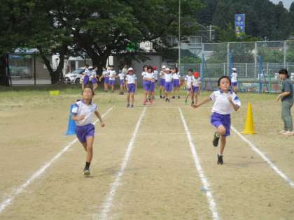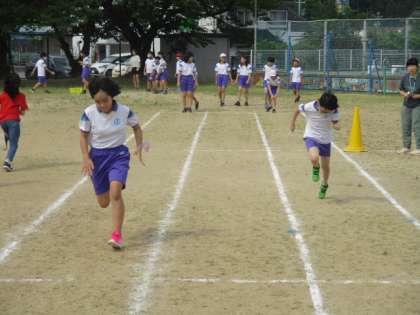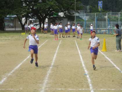 走り幅跳びの練習を終えた5年生は、最後に50mを走りました。