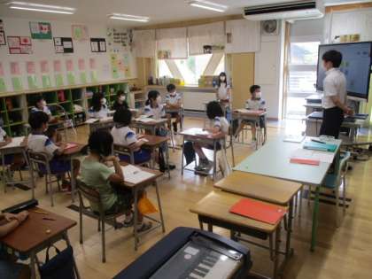 今日訪問いただいたのは、前述の次長さんと課長さん、それに教職員係の先生方です。この方々は1年間のうちに市内の全小中学校を訪問される方々で、たくさんの学校・授業を見てこられていますので、短い時間であってもその授業の良さや問題点、そして更には学校運営についても正確な判断をされます。