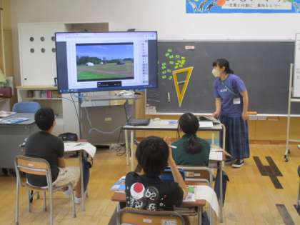 6年生の5時間目は社会科の授業でした。青森県の三内丸山遺跡について、担任の先生から画期的な覚え方を教えてもらっていたようです。この秘密の覚え方だと、青森、三内丸山遺跡、縄文時代が一度に覚えられるそうです。