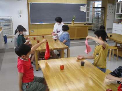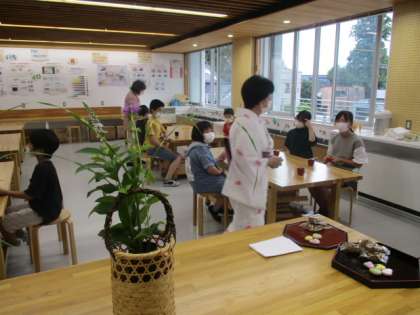 最後は、お茶クラブです。今日は湿度の高いじめじめした気候でしたが、講師の先生の素敵な浴衣姿とお花、お茶菓子の雰囲気は、とてもさわやかに感じました。写真からも伝わるでしょうか。