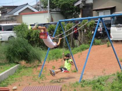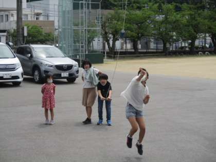 下 : 暑い中ですがペットボトル投げを楽しんでいます。