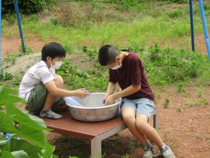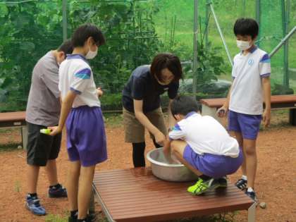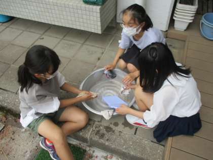 6年生の1時間目は家庭科の授業で、この時間に洗濯体験をしました。洗濯体験は、使った靴下などを準備して、それを洗濯板と洗剤を使って手で洗います。現代では、なかなか体験できない事なので、どの児童も楽しそうにやっていました。もし昔の人の様に、家族中の洗濯物を一人できれいにしなければならなかったら、その仕事量にうんざりしてしまうかもしれません。
