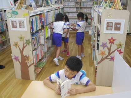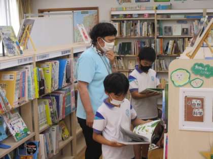 1時間目に2年生は図書室へ行き、虫のことについて調べ学習をしました。