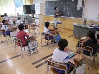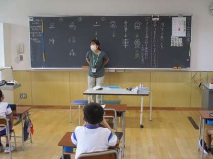 5年生の「さわやかタイム」も国語のモジュール学習で、今朝は漢字の成り立ちについての学習中でした。いつもの通り、5年生は担任の先生と一緒に和やかに学習を進めていました。