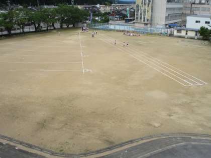 今朝の低学年は「さわやか体育」でした。「走」の50m走、「跳」の走り幅跳び、「投」のソフトボール投げ。いよいよ今週末に「天下一記録会」が予定されていますから、少しでも記録が伸びるよう頑張ってほしいと思います。