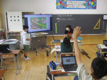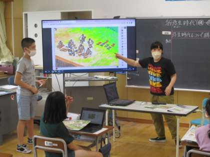 5時間目の6年生は社会科の授業でした。この学習では、縄文時代と弥生時代の集落を説明した絵を見ながら、その違いを見つけ出し、更にその違いが生まれた訳についても考察を深めました。6年生には数人「城マニア」がいますが、その視点から観察し読み取った指摘には鋭いものを感じました。何かを深いところまで学習することは、他の内容であってもよい影響を与えるこを実感しました。
