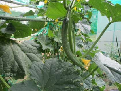 朝、2年生が夏野菜を育ていている畑をのぞいてみました。最近は毎日のようにキュウリやミニトマトを収穫しているようですが、今朝も野菜が実っていました。この後、子供たちは笑顔一杯で野菜を収穫することでしょう。