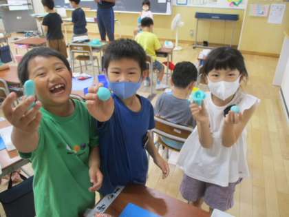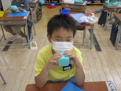 1年生教室では、粘土を使った作品を作っていました。
