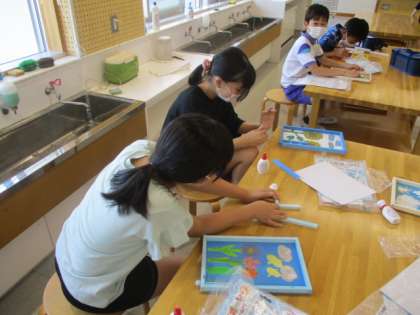 4年生の5時間目は、2グループに分かれて学習を進めました。図画工作の「コロコロがーレ」を作るグループをのぞいてみましたが、以前よりはかなり作業が進んでいるようで、完成間近といった感じでした。出来上がった「コロコロガーレ」を使って遊ぶのはおもしろそうです。