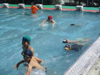5・6年生は共同で5時間目にプールへ入りました。1・2年生が真っ先に入り、3・4年生が続いて入り、「いつ私たちは入れるのだろうか?」と待ちに待っていたプール学習です。今日は天候も申し分なく、プール学習を満喫できたことと思います。