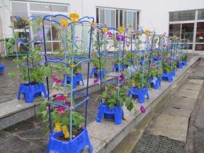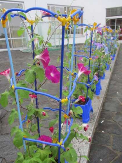 今朝の雨の中、1年生のアサガオが満開を迎えました。人間にとってはやっかいな雨ですが、アサガオにとっては嬉しい雨なのでしょうか。