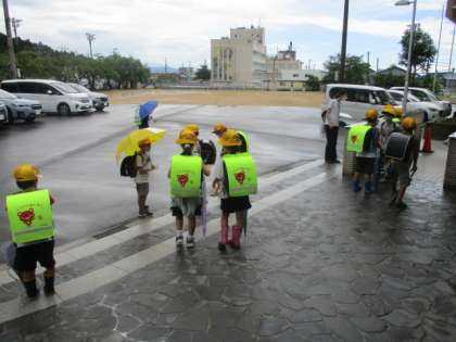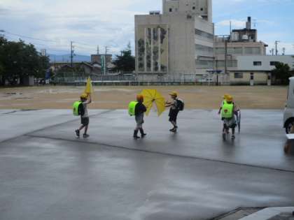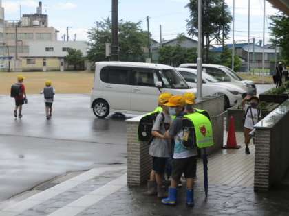 登校の頃には土砂降りの雨模様でしたが、1・2年生が下校する頃にはやんできました。