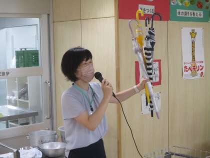 今日の給食時、教頭先生から全校へ傘の披露がありました。お家に方の親切が詰まった傘ですから、大切に使っていきましよう。