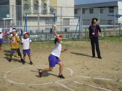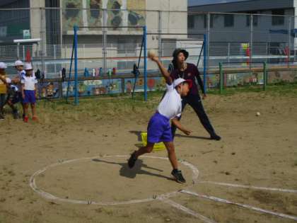 2年生は、走り幅跳びとソフトボール投げの両方の様子です。