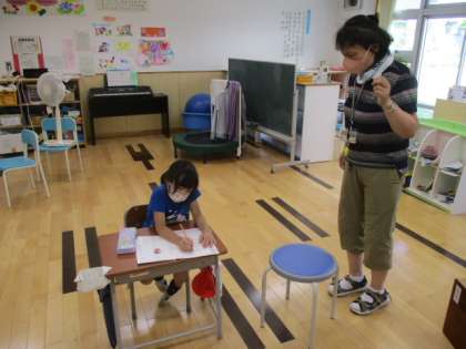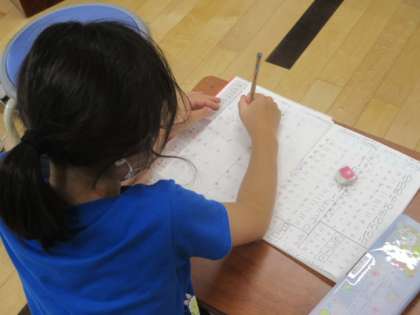 5時間目のひまわり級は算数の授業でした。この授業では、繰り下がりのある引き算の学習をしましたが、内容をしっかり理解しているので自分ですらすらと解いていました。