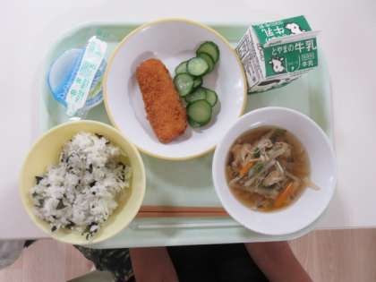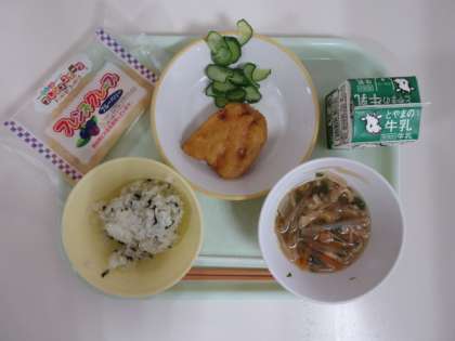 きゅうりもみ、さわにわん、牛乳、わかめご飯は共通の献立です。