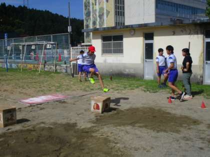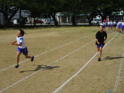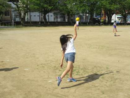 上学年の今朝は「さわやか体育」でした。内容は天下一記録会の「走」「跳」「投」です。今朝の割り振りは、4年生が「投」で5年生が「走」、6年生が「跳」でした。