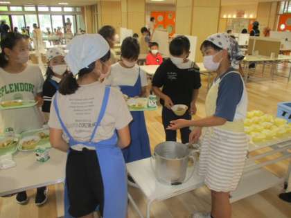7月12日(火) 給食準備風景(5年生)