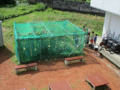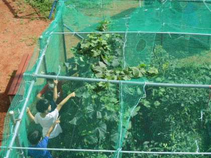 2年生の1時間目は生活科の授業だったので、みんなで学級農園の被害状況確認とその対策に出かけました。