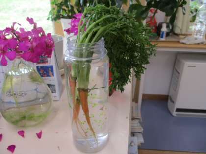 ひまわり級の畑は、ネットで覆われていませんので、まだ育っていないニンジンを食べる訳でもなくサルに引っこ抜かれてしまいました。(写真上)