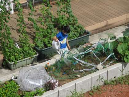 まだ残っている作物もあるので、それに水をやっています。(写真下)