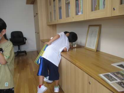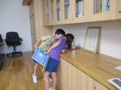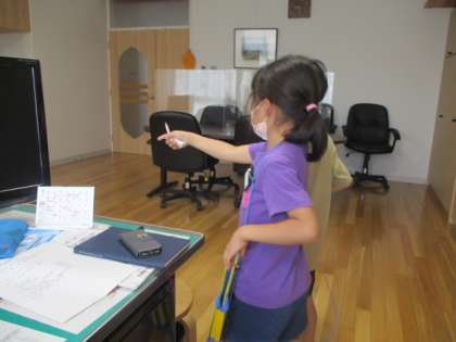 1時間目の1年生は生活科の授業で、教室を飛び出し「音さがし」に出かけました。耳を澄ませてよく聞いてみると、私たちの周りは色々な音であふれています。そんな音を探し出し、その音を文字で表します。