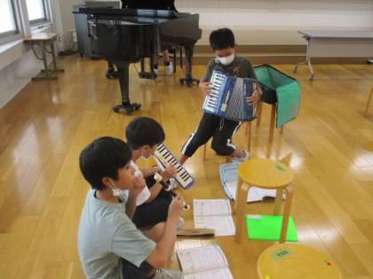 5時間目の6年生は音楽の授業で、「ラバーズ コンチェルト」という曲の合奏に向け、それぞれで楽器を練習しました。