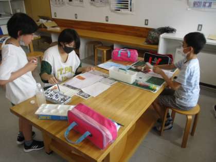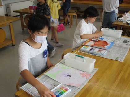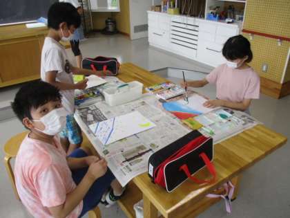 5年生の5時間目は図画工作の授業でした。「夏の夜」の製作の続きをしました。