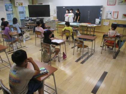 6年生を中心に(6年生がいない地区では最上級の児童)司会・進行をしていきます。今日の集まりでは、1学期の反省や夏休みの過ごし方について伝達や確認をしていました。
