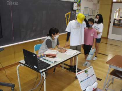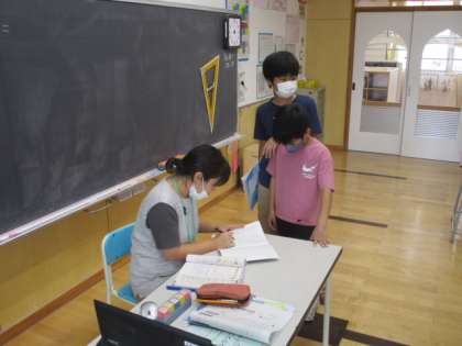 6時間目の6年生は、比の計算のプリントに取り組みました。できた人から担任の先生のところへ持って行き、採点をしてもらっていました。