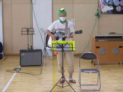 「スペシャルミュージックタイム」では、教員が特別ゲストさん(元PTA会長さん)のギター演奏に合わせて「ひまわりの約束」を歌いました。