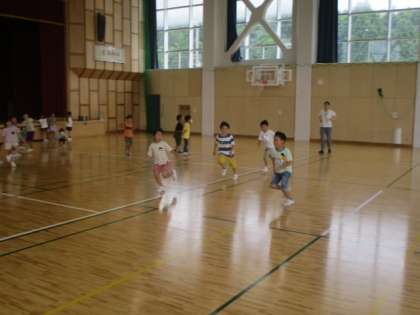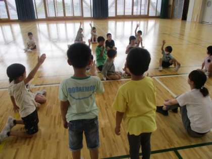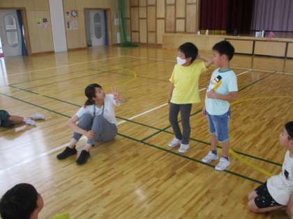 5時間目の1年生は、体育館を使って「お楽しみ会」をしていました。これから始めるのは「さかな鬼」という鬼ごっこです。代表の2人が担任の先生のアドバイスを受けながらみんなの意見を聞きます。「(さかな鬼は)なんかいすればいいですか?」の問いかけにみんなの多くは、最大の回数の3回に手を挙げていました。