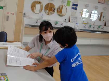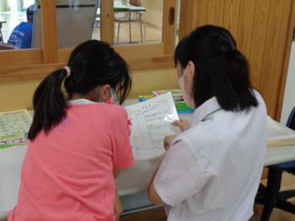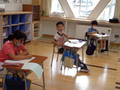 3年生は、廊下で一人ずつあゆみをもらっていました。真剣に担任の先生の言葉に耳を傾けています。教室で待っている子供たちは、プリント学習に取り組んでいました。