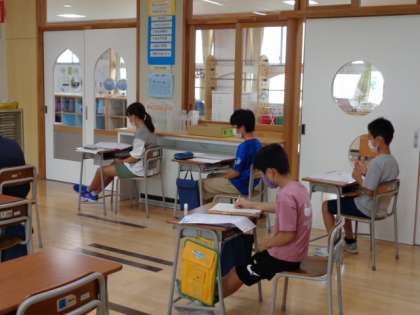 6年生教室でも、テストの解説を受け1学期の学習の定着を図っていました。最終日も集中して取り組む6年生です。