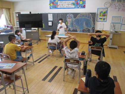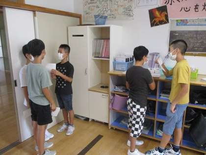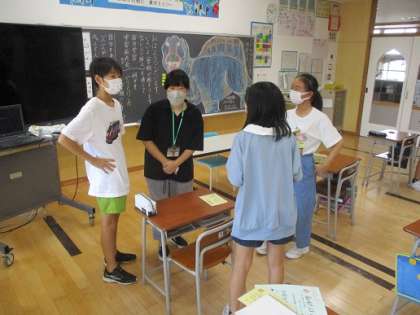 6年生教室では、自分の夏休みのことをクイズにして、互いに当て合っこをしていました。夏休みのことを話す子どもたちは、とても生き生きしていました。