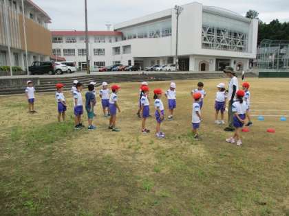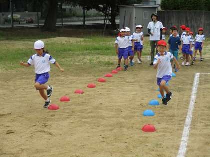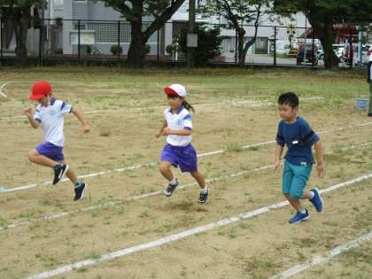 1年生は「走」の順番です。グラウンドに整列した後は、2人ずつスタートの練習です。練習の最後には、50mを実際に走ってみました。
