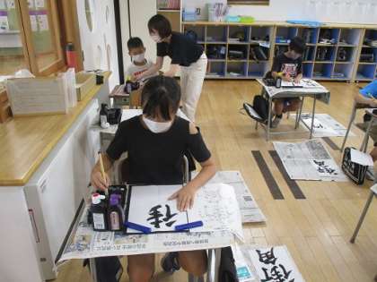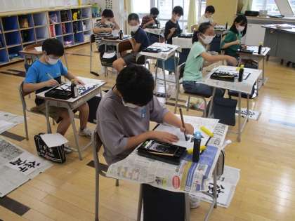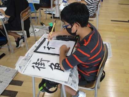 6年生の3時間目は書写の授業でした。「街角」という字を書きましたが、「角」という字の「ク」の部分の大きさ調整がなかなか難しいようでした。