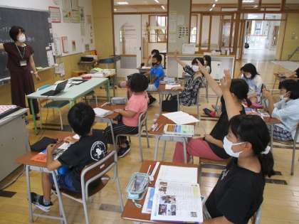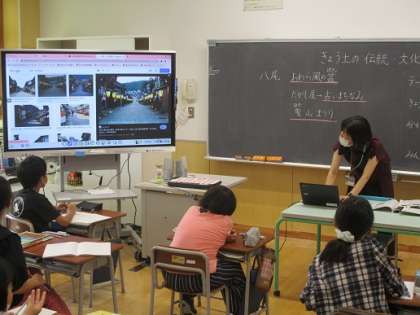 4年生の3時間目は社会の授業でした。4年生は近々、校外学習に出かける予定で、その際に八尾を訪問します。そこで「おわら風の盆」や「曳山」といったテーマを1人1つ決め、そのテーマに沿った調べ学習を進めていきます。