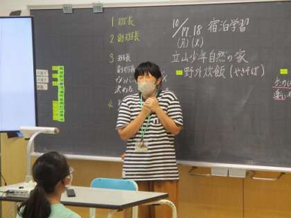 5時間目の6年生教室では、宿泊学習の班長決めをしていました。班長を選出するところでは自分から立候補する児童が何人もいて、とても心強く感じました。