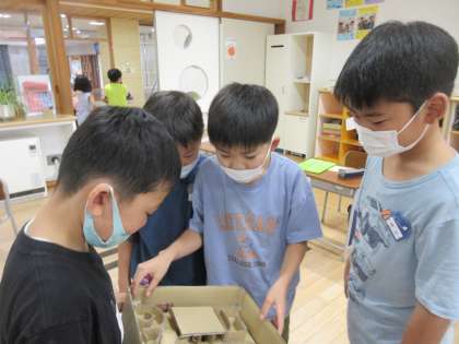 夏休み中に取り組まれた「自由研究」の発表会を行いました。どの作品も一生懸命に調べたり、作ったり、実験したりと努力の跡が分かり感心しました。自分が興味をもったことについて、じっくりと取り組まれた経験は、必ず力になっていると思います。保護者の皆様、ご協力ありがとうございました。