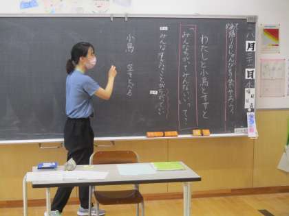 3時間目の3年生は国語の授業でした。この授業では、金子みすゞさんの「わたしと小鳥とすず」という詩について学習しました。中でも「みんなちがって、みんないい」という部分の意味について考えを深めていきました。