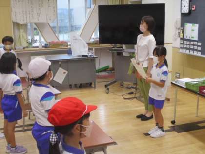 今日から2日間、1年担任が不在のため教務主任が担任代行をしています。今朝、教室の様子を見に行くと、少し緊張しながらも元気にきびきびと行動している子供たちを見ることができました。