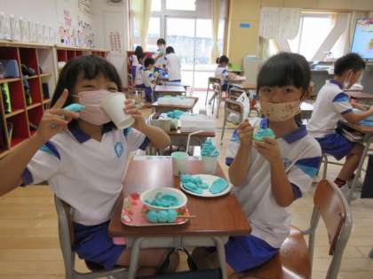 子供たちは、口々に「これ何だと思う?」「モンブランだよ!」などと紹介してくれます。また、にこにこしながら、食べたり飲んだりするふりを見せてくれます。楽しくてたまらない様子です。