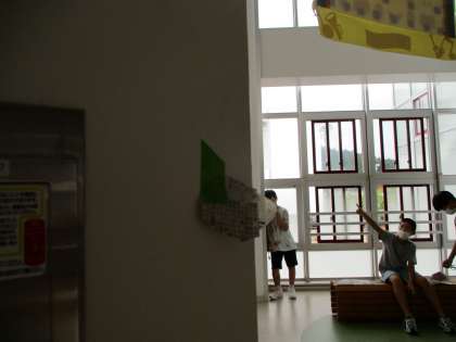 今日は、場所や大きさ、角度などを試しながらグループで作品への想像を膨らませました。