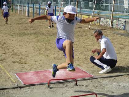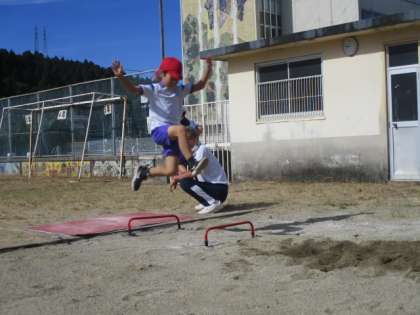 3年生は「跳」の順番です。今日はミニハードルを目印に置いて跳びました。うまく跳べたでしょうか。