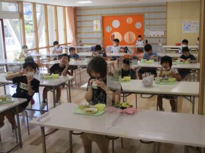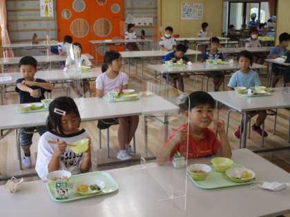 下の2枚の写真は2年生の給食風景です。今日も準備がとても早く、真っ先に食べ始めていました。